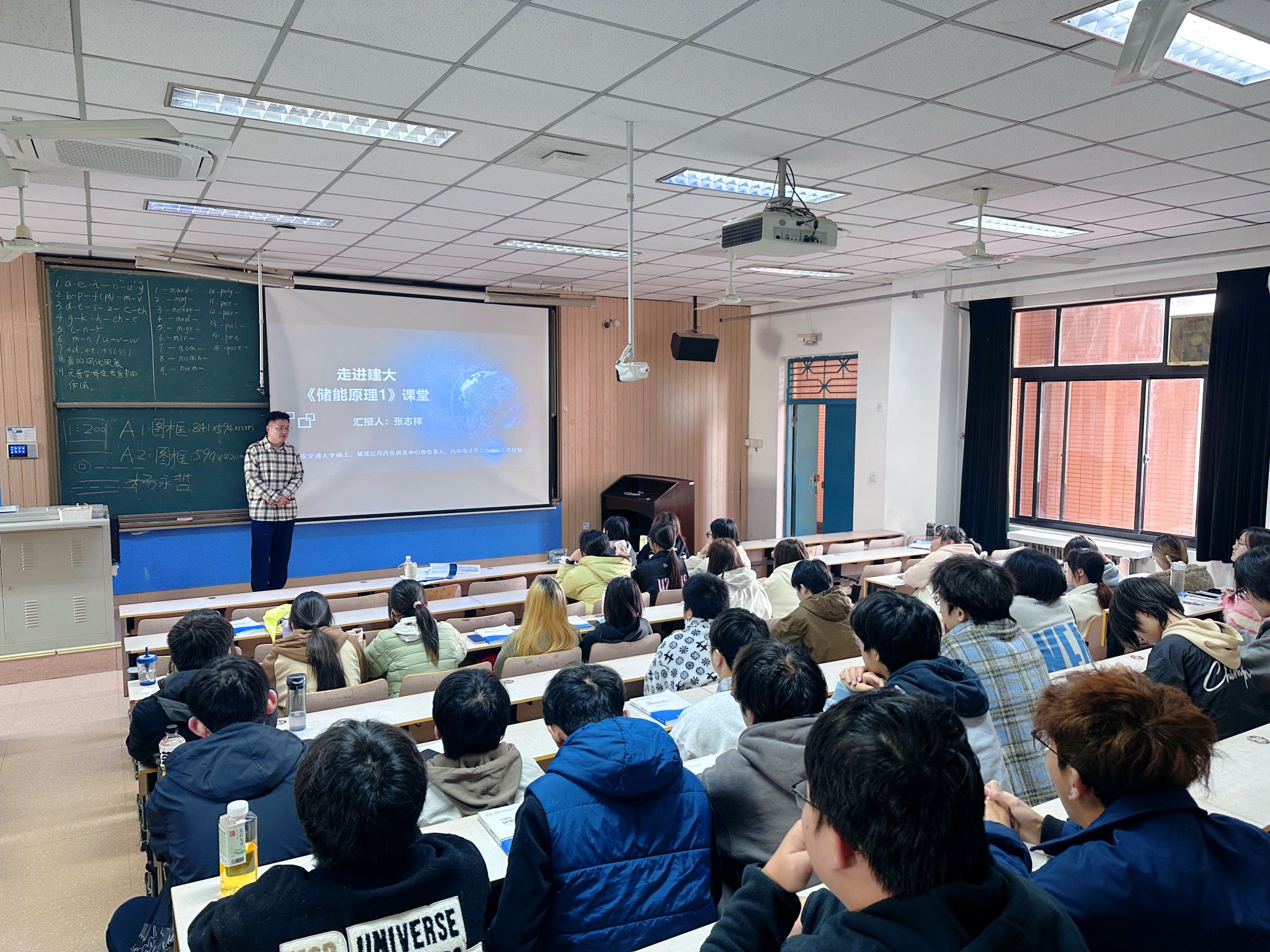 邀请4位储能科学与工程领域行业专家走进课堂,为储能科学与工程专业的同学们开展专题授课。4位专家分别是西安翱翔机电科技有限公司总经理刘昌法高级工程师、西安热工研究院有限公司贾工、锦浪科技股份有限公司张志祥工程师及百度BDDWD IDC数据中心高级系统工程师辛工,授课内容包括空气源热泵系统、储能技术原理与工程应用、储能系统热设计与工程实践、数据中心热管理技术等。专家们结合丰富的项目经验与先进案例进行了详细而生动讲解,并为同学们未来的职业发展提供了宝贵的指导。